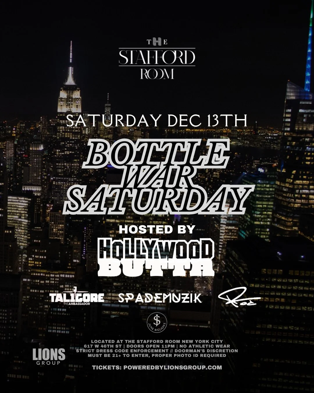 Friday Night Lights $30.00 Sold out Sold Out Added! Bottle War Saturday $30.00 Buy Tickets Added! New Year's Eve 2026 @ Stafford Room from $75.00 Select Tickets General Admission VIP Pass Add To Cart Added! All Black New Year's Eve 2026 @ Aura57 from $100.00 Select Tickets General Admission VIP Pass (skip line) Add To Cart Added!
